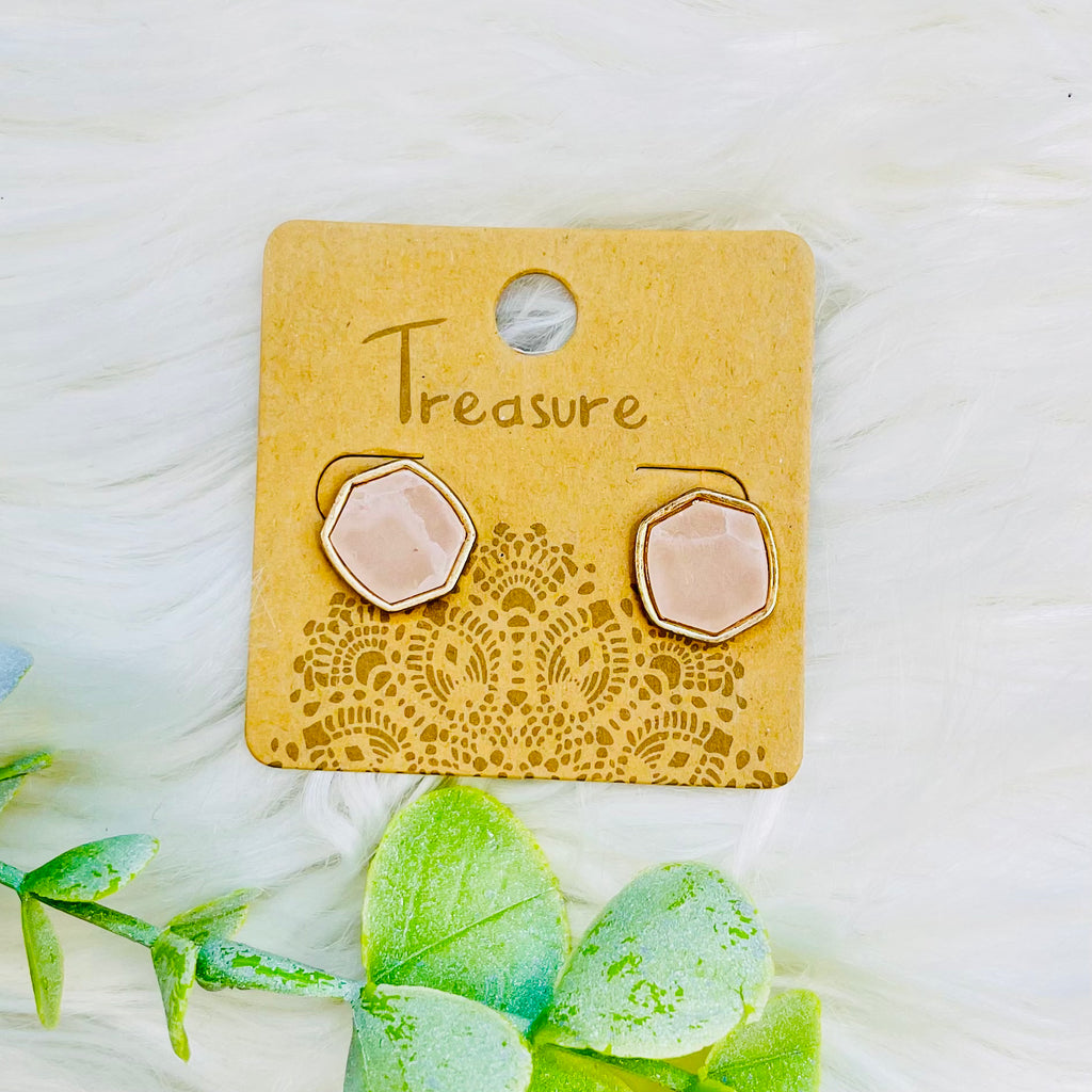 Pink Hexagon Stud Earrings