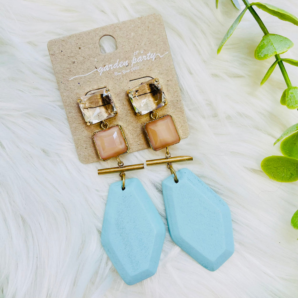 Bling Gold Bar Aqua Stone Earrings