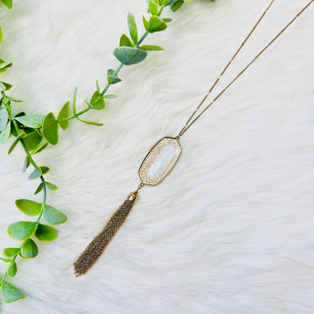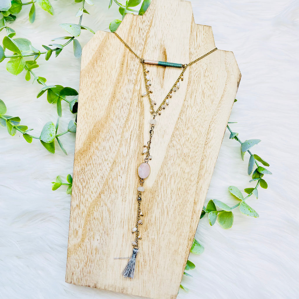 Oval Stone Tassel Necklace