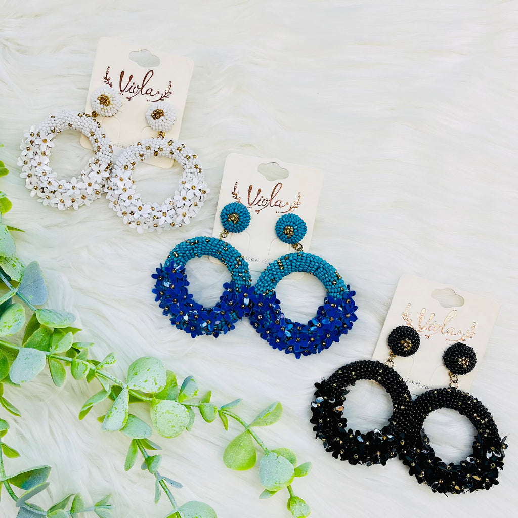 Seedbead Flower Embellished Hoop Earrings