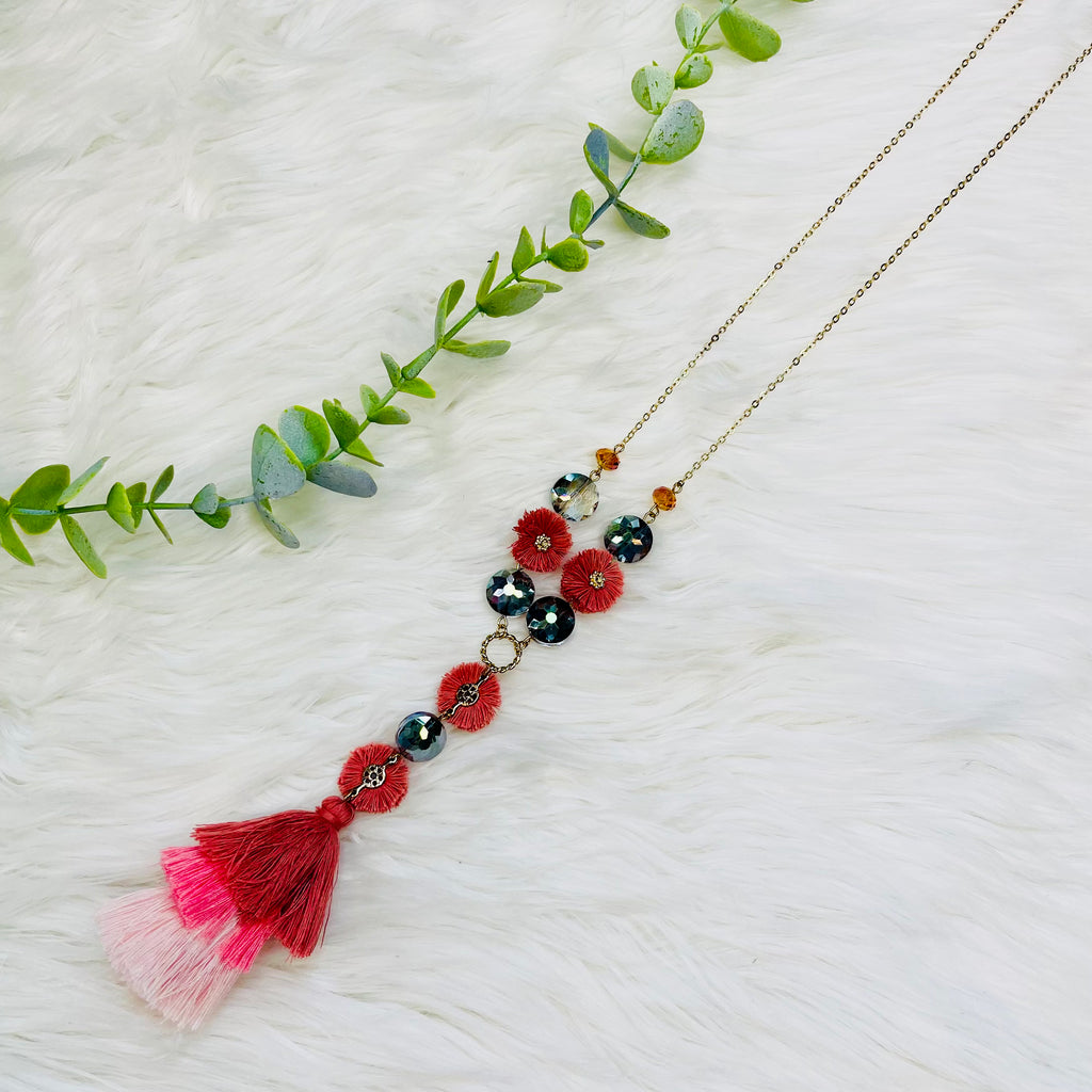 Flower Beaded Ombre Tassel Neckalce