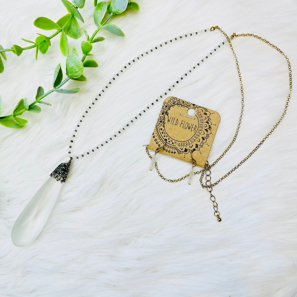 Druzy Teardrop Stone Beaded Necklace