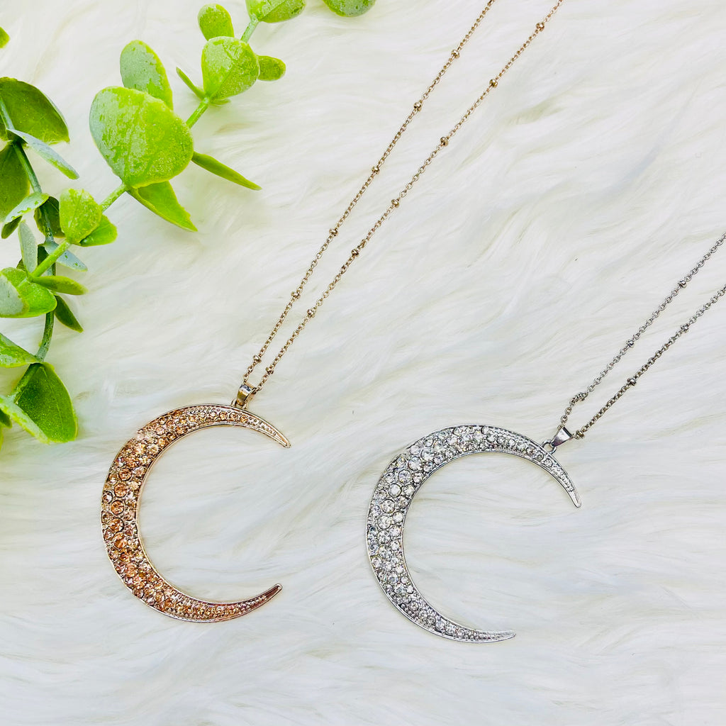 Rhinestone Crescent Moon Necklace