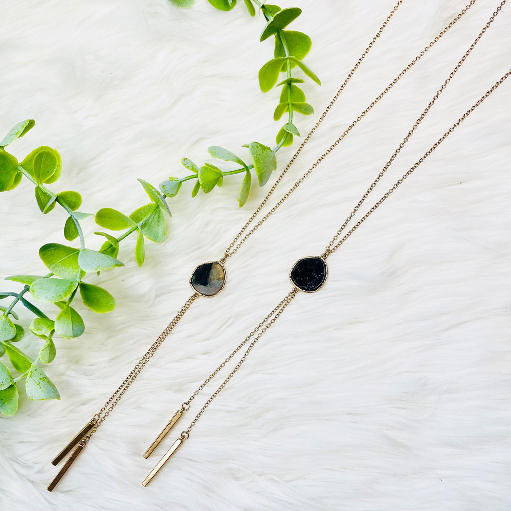Stone Gold Metal Dangle Necklace