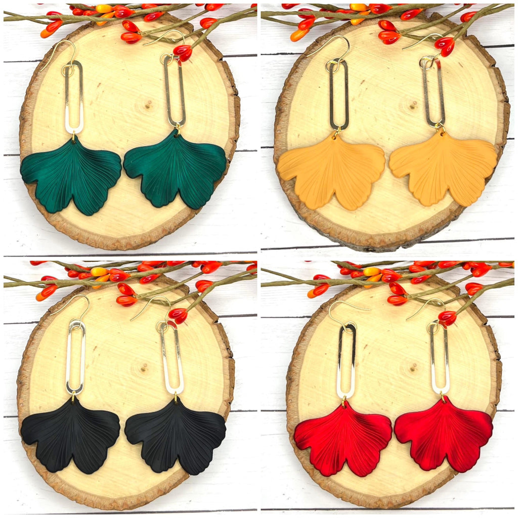 GINKGO LEAVES WITH GOLD ELONGATED OVAL HARDWARE HANDMADE EARRINGS BY B.O.D