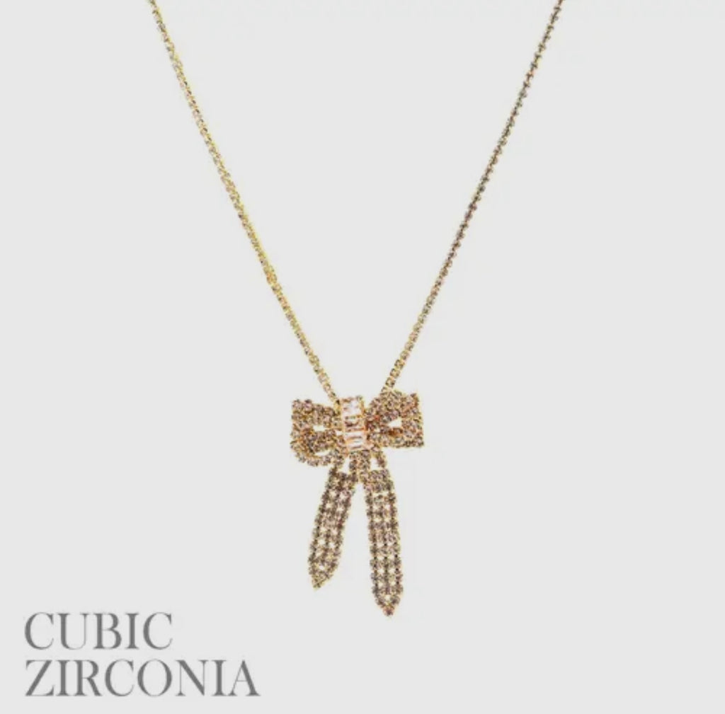 RHINESTONE GOLD BOWS CRYSTAL-STONES NECKLACE