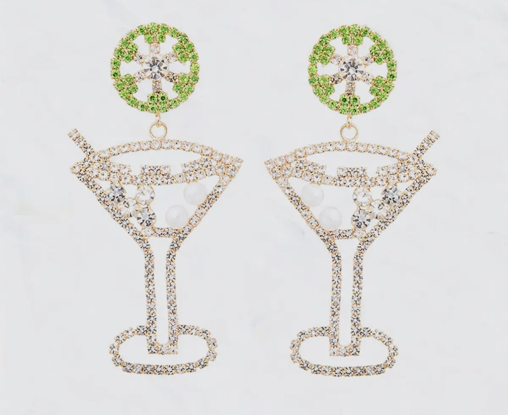 RHINESTONE BLINGY MARTINI LEMON ON THE TOP EARRINGS