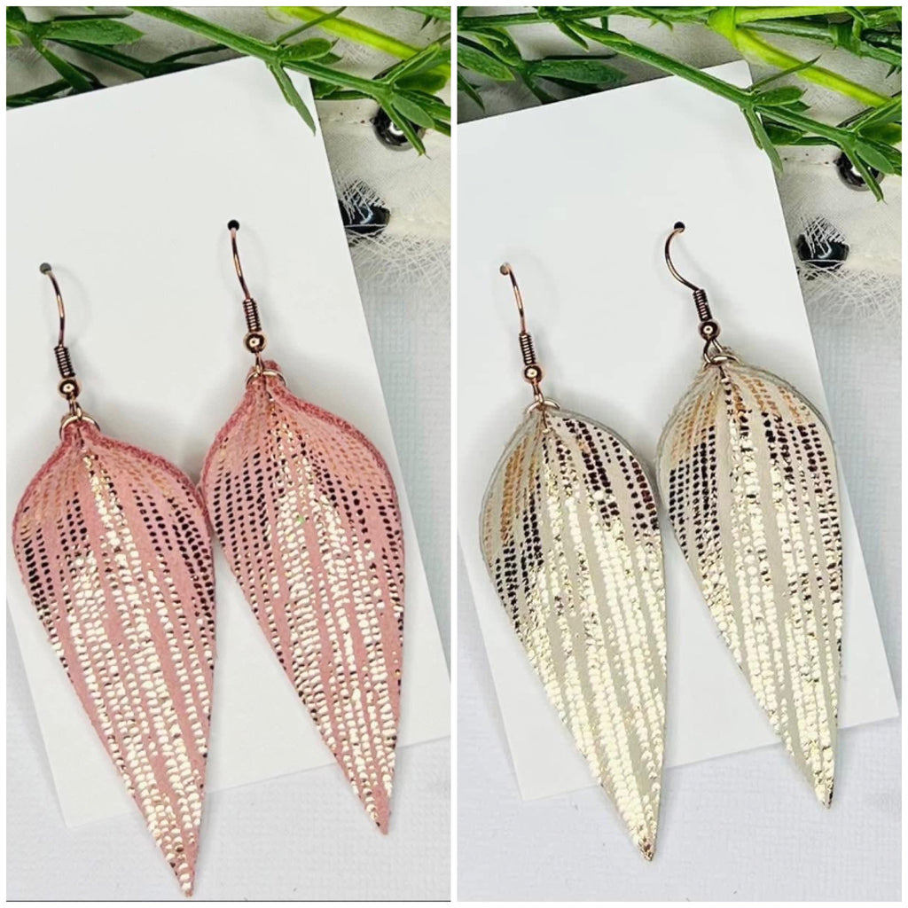 METALLIC SPECKLED DESIGN PINCHED TEARDROP LEATHER ANDMADE EARRINGS BY B.O.D