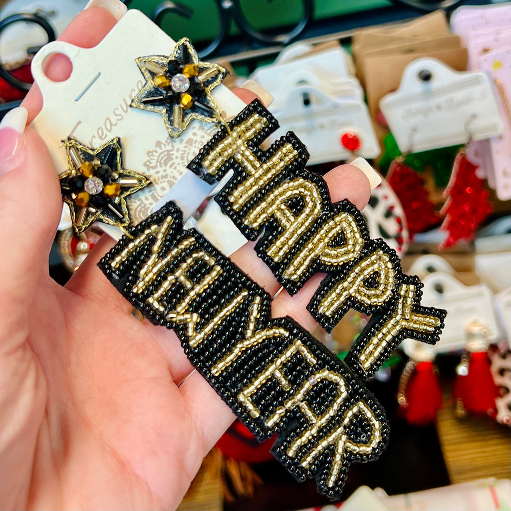 Black Seedbead HAPPY NEW YEAR Earrings