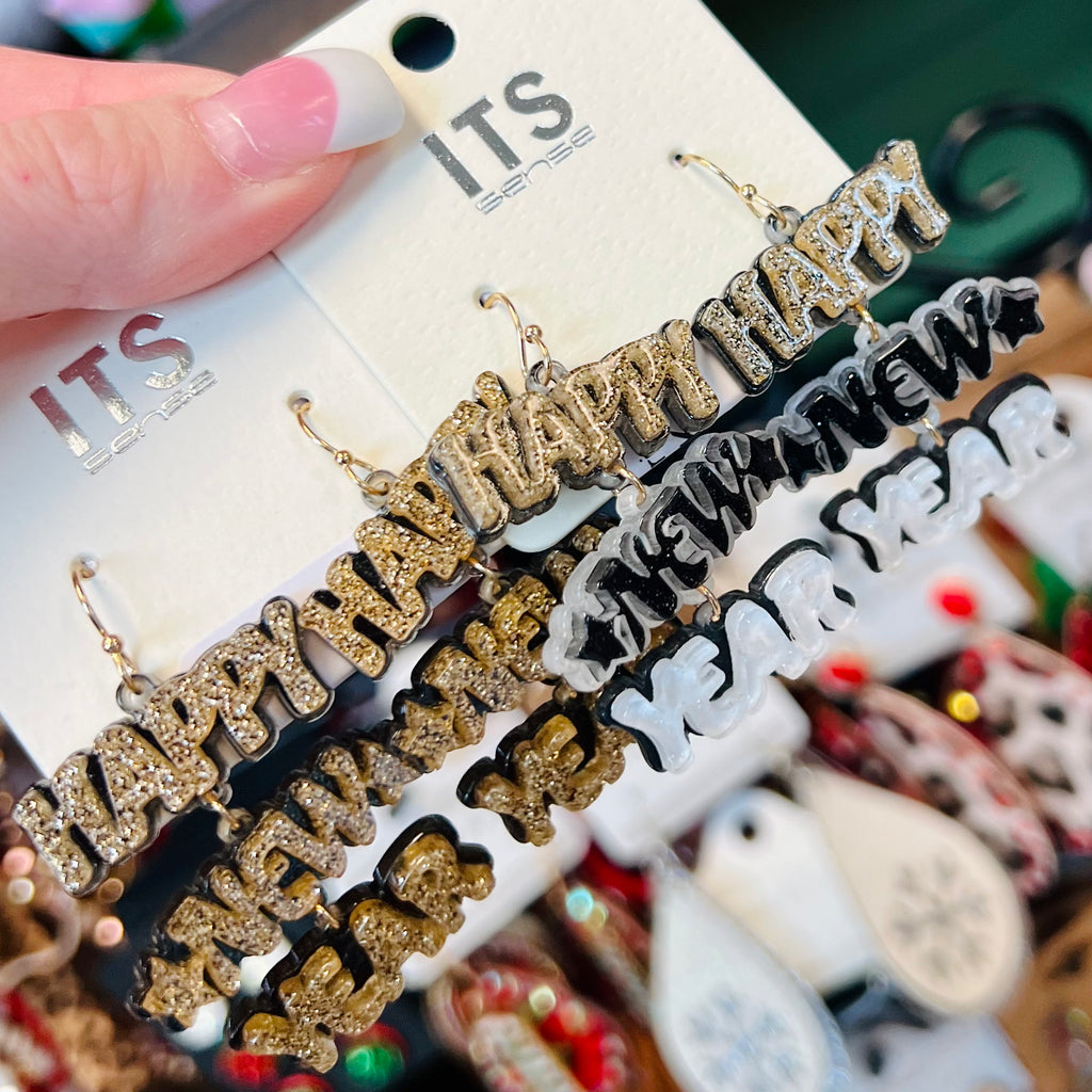 Happy New Year Dangly Earrings