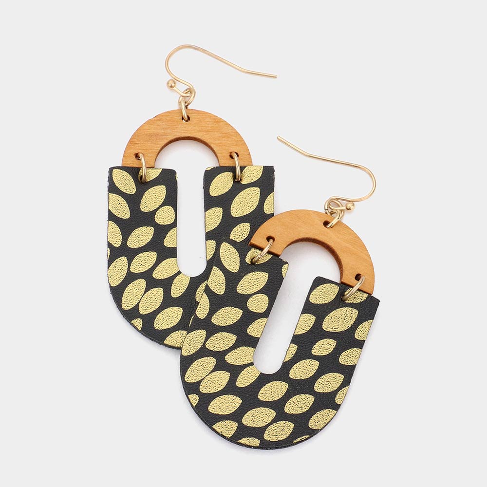 Printed Wood Oval Earrings